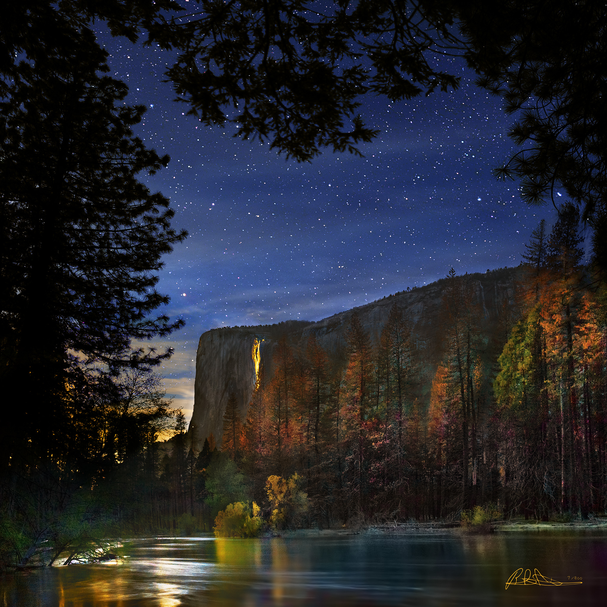 Moonlit Firefalls. A series of images that are not the first, but part of a small handful of images that exist of the natural Yosemite “Firefall” Horsetail falls under the moonlight (not the ultra-popular sunlit firefall)