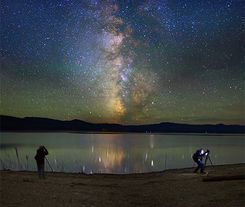 Saturday night a couple of friends, Fernando Cabrerizo and Domicio Carbajo, who came all the way from Spain to watch the eclipse from a campground in John Day just a 90 minutes drive from the lake, paid me a visit, and we had a nice night photo session right there by the lake. After spending some time with Fernando’s gang at their campsite (thanks for the ride and hospitality!) all that was left for me was just waiting by the lake until the eclipse.