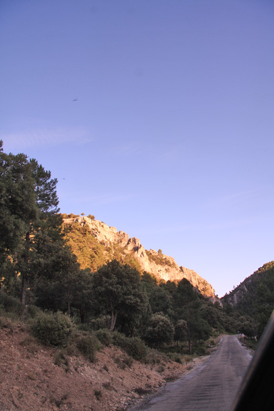 The road to Pinar de Araceli from Murcia – where I live when I’m in Spain – is quite comfortable for the most part. Lots of highway and only for the last 20 minutes, climbing up the mountain, it gets narrower and winding, but nothing we’re not used to, right? This photo below is actually from the easier part of the drive to the top, but I like the stone-made blocks at the side of the road.