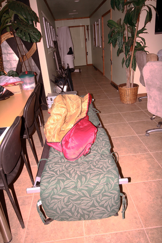 Besides everything I’ve mentioned, driving 2 hours to a dark site during weekdays is also not easy business, as we all have to, well, WORK the next day, so although neither of us were using automated software to program our sessions, whenever we had a chance, we would set up a cot inside the observatory and try to catch a few zzz’s… just not too many, and certainly, never more than a few in a row… here’s my cot waiting for me: