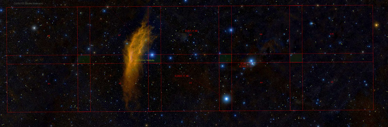 This selection wasn’t completely random. Eric and Al’s areas were for the most part, adjacent, which made sense since they were going to use the same type of camera. And the area of the California nebula was assigned to the STL 11000 (me), since it is a high signal area compared to the more dusty areas. Yes, pane 1 (also assigned to me) only contains extremely faint dust, but in order to meet the other conditions, it was either pane 1 or 6 for me.