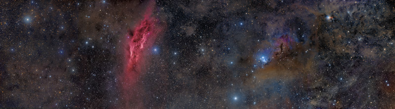 Eric and Al used a very similar setup, with AP900 mounts, Takahashi FSQ106 scopes and the FLI Proline 16803 camera. I used a Takahashi EM400, another Takahashi FSQ106 scope, and the SBIG STL11000 camera. Bob also used a SBIG STL11000 camera, and yet another Takahashi FSQ106 telescope, all on a Paramount ME mount. The fact we all were using the same type of scope and that all cameras had the same pixel size, made everything a bit easier, as no resampling would be needed during mosaic assembly or post-processing.
