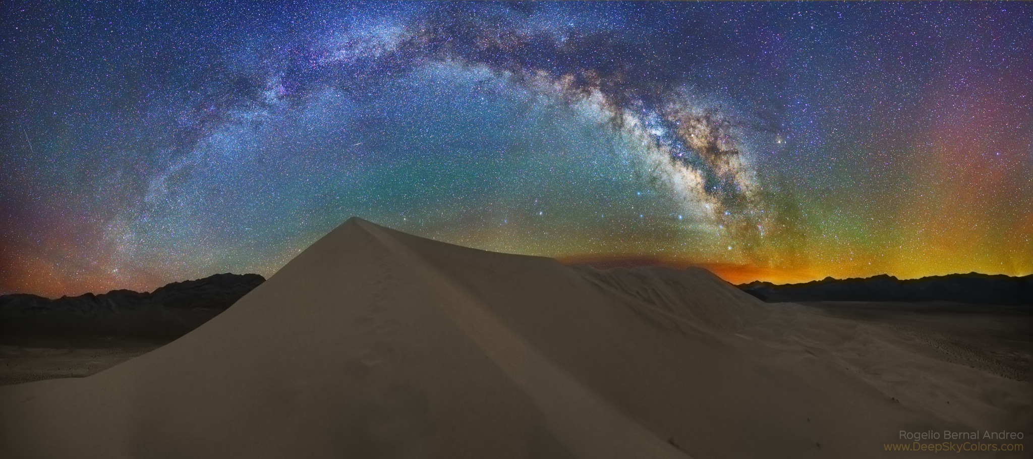 There was an absurd amount of airglow the two nights I was in Death Valley this past weekend – pretty much as the last time I visited it a year ago. Void of structure but surely tinting the sky in most of the pictures. That and the thin clouds that were present this night, plus the unfortunate light pollution from the LA/SD metropolitan areas nearly 200 miles away really helped making a living rainbow out of the sky in this scene. The camera was having a ball, and me… me, I don’t need to tell you! Despite being right next to an uncomfortable edgy drop to the right (not obvious in the image) the whole experience wandering those dunes that night on my own terms was an absolute “Top 10” in my list, for now at least. And that’s saying something.