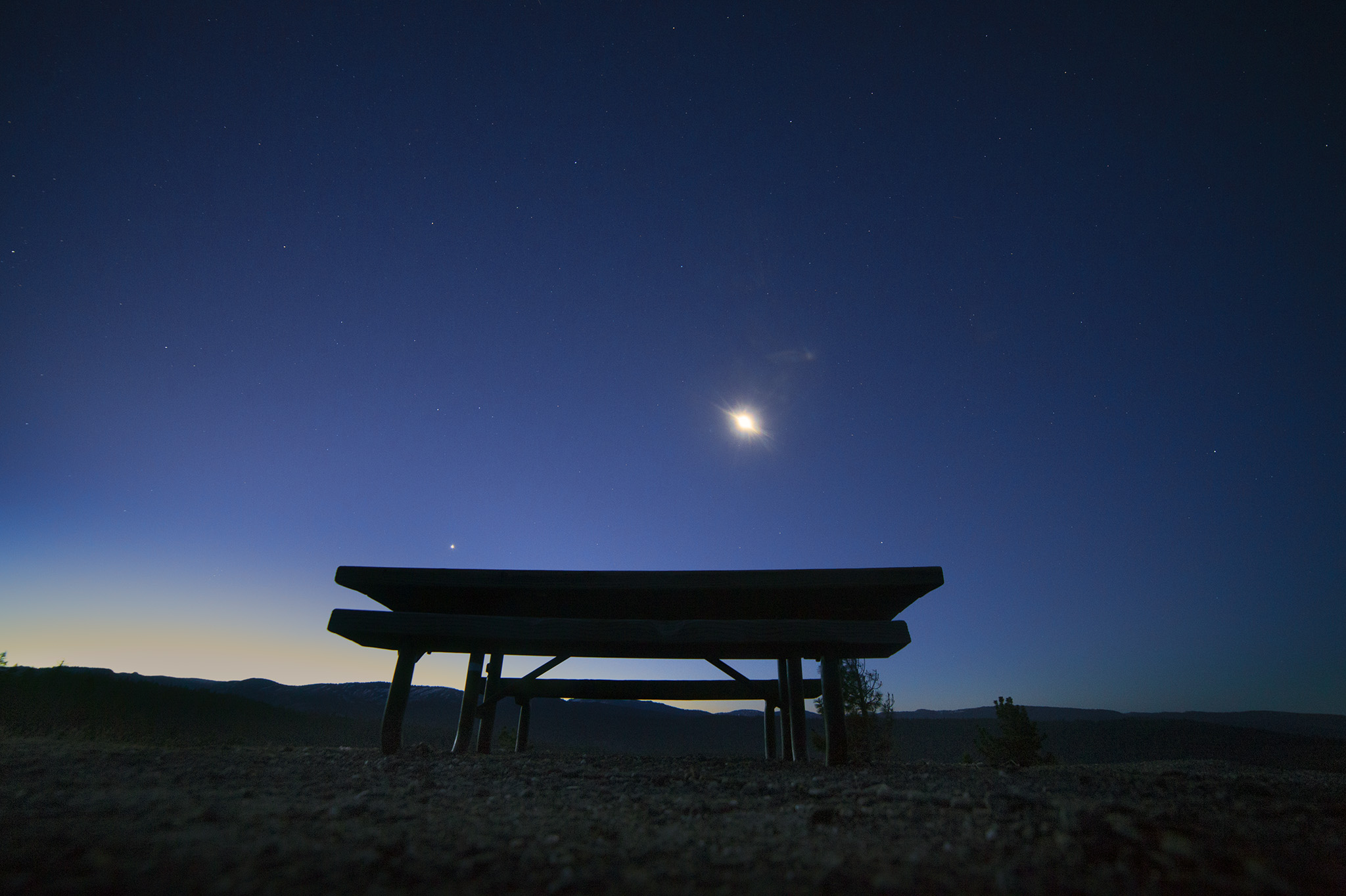 Moments before preparing a nice cup of coffee while waiting for sunrise, with the moon and Venus waving goodbye for the day, while my daughter was still sleeping inside the car. This was after a night of deep-sky and nightscape astrophotography not too far from here. It was a nice moment.