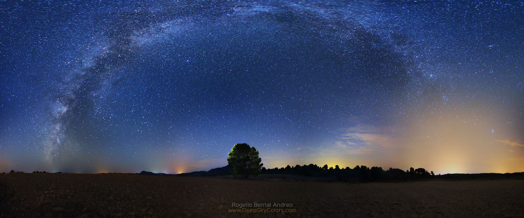 I had a different idea for this image – captured not far from Hellín, in Albacete, Spain – but it didn’t work, so I ended up settling for this classic wide pano instead. The light dome on the right is from the city of Hellín.