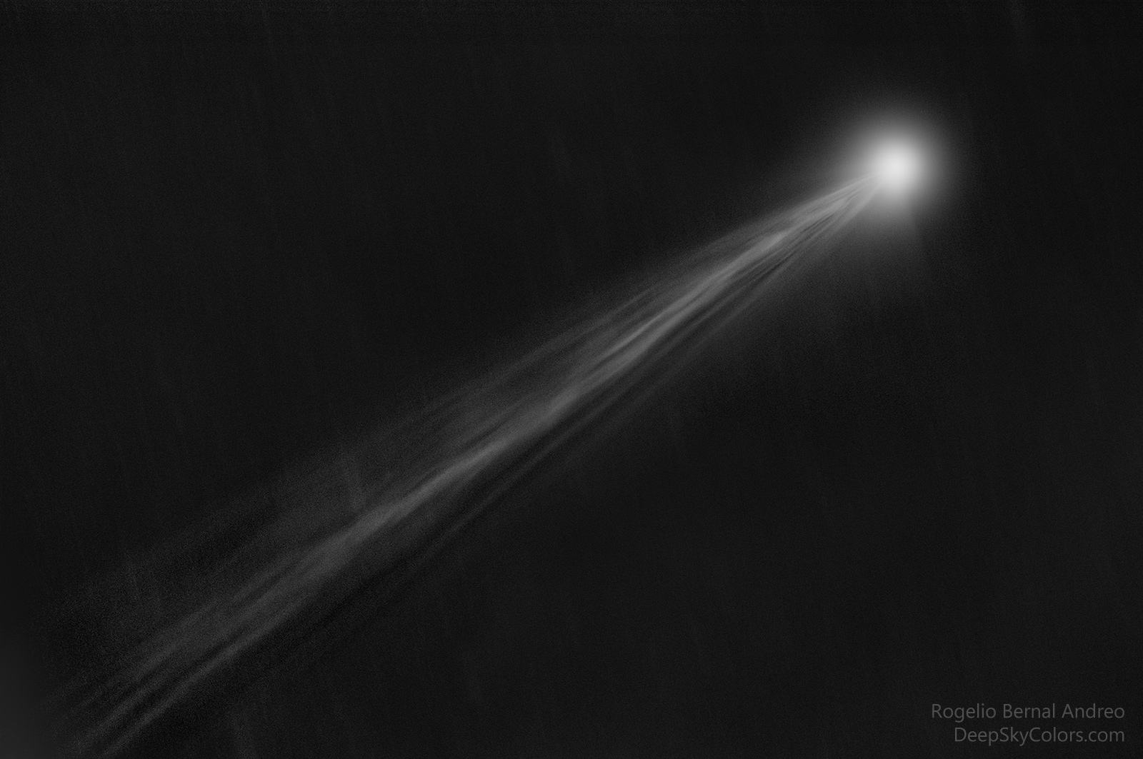 Comet C2014 Q2 Lovejoy in black and white, starless.