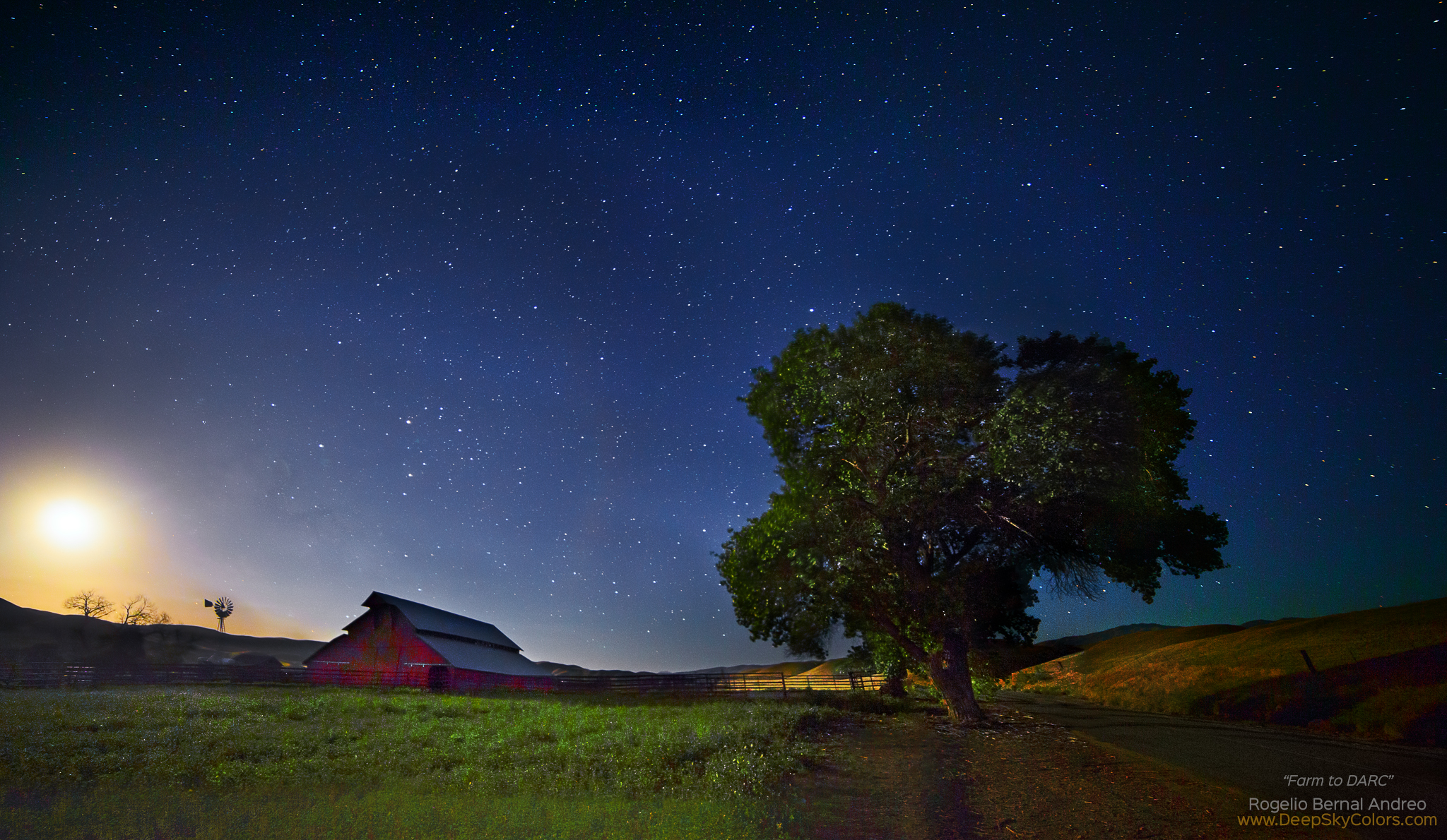 Night farm scene, Fresno County, California