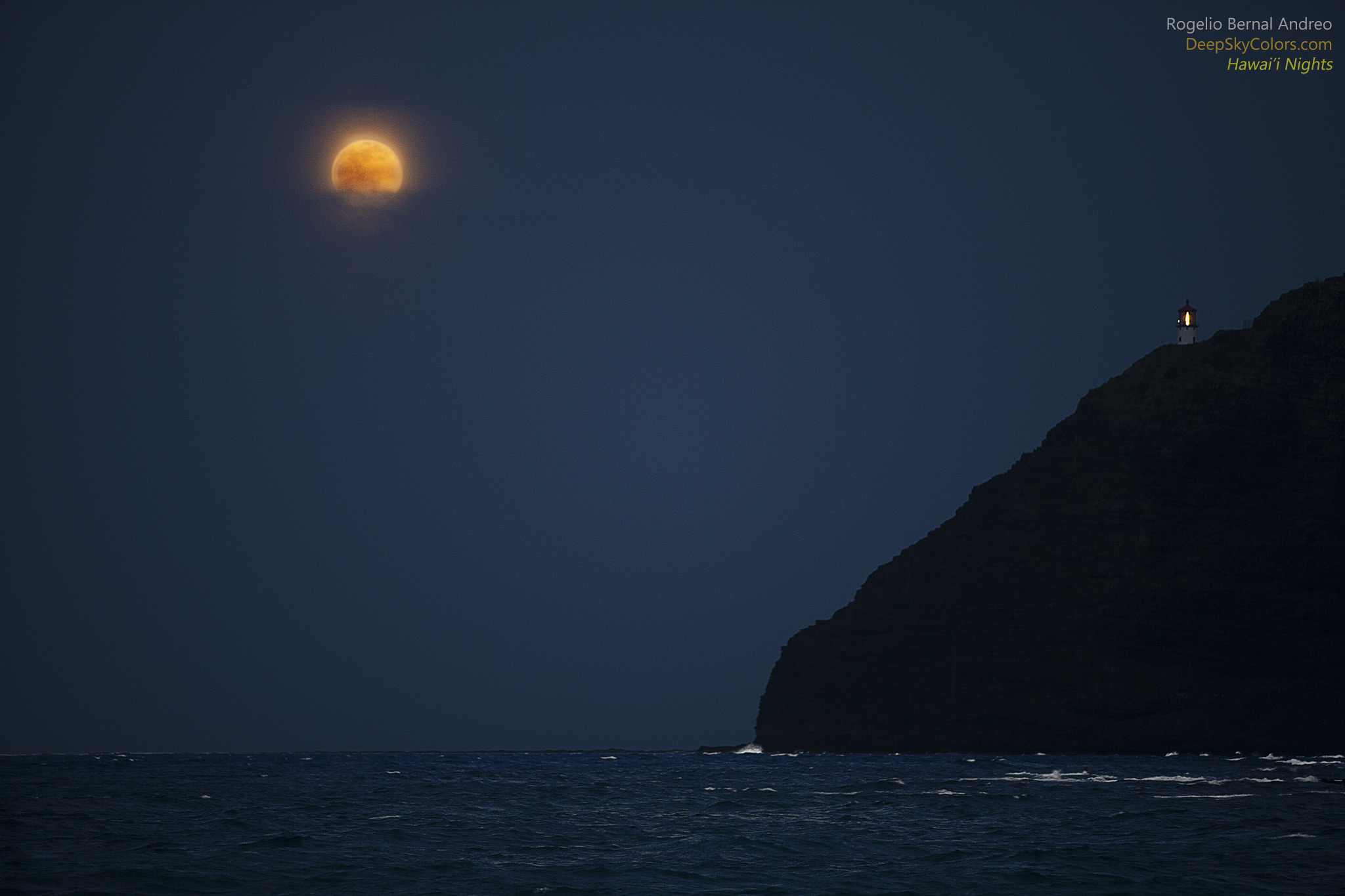 Moonrise by Makapu‘u lighthouse, in Honolulu, Hawaii.