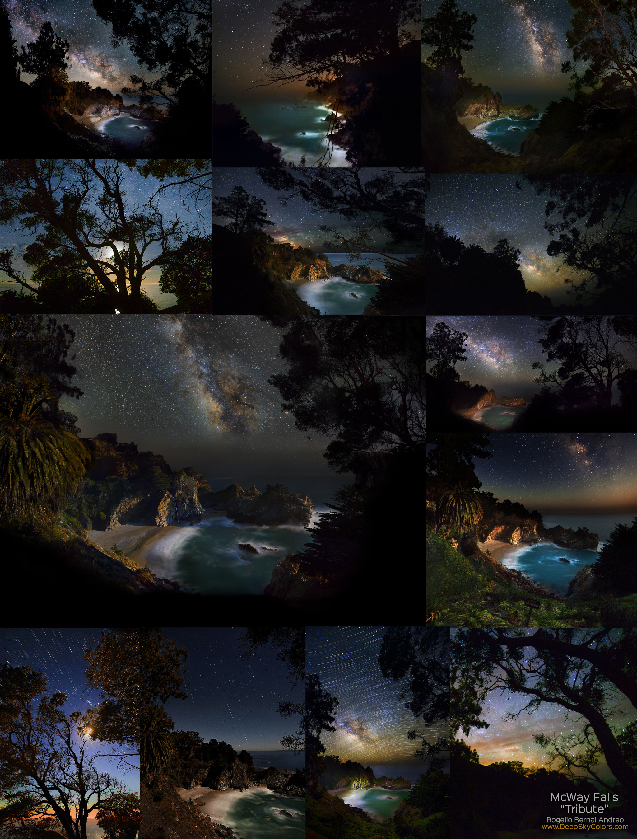 Collection of nightscapes from Mcway Falls, Big Sur, California