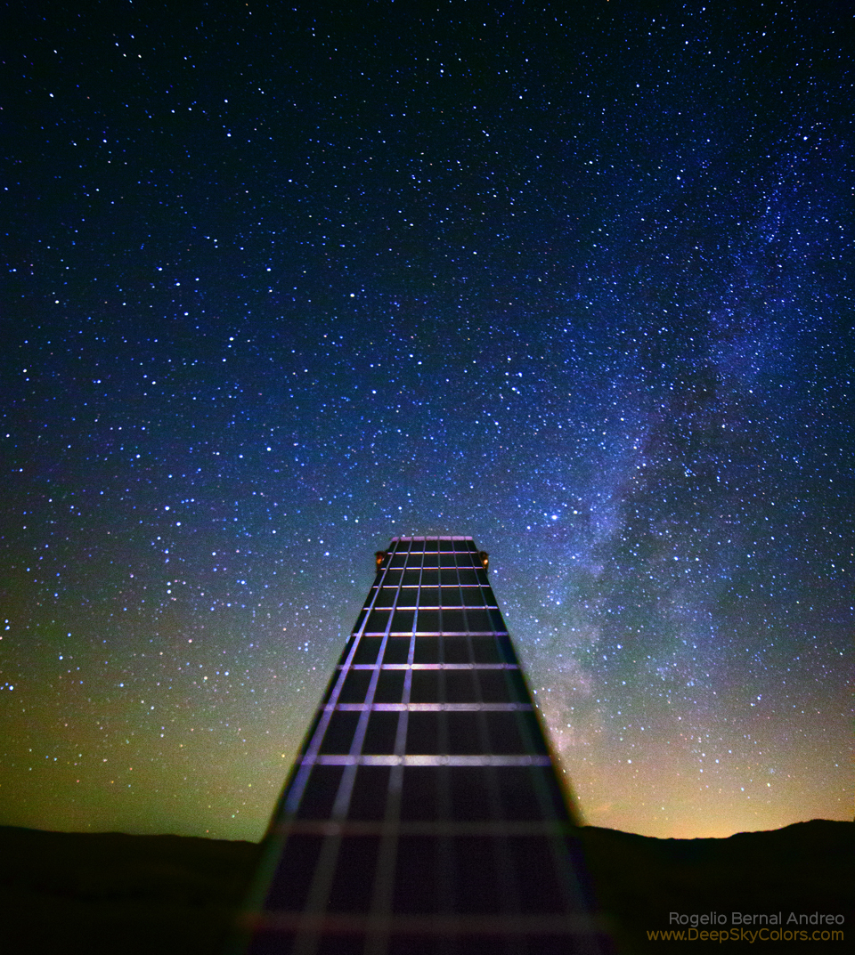 Classic guitar agains the night sky.
