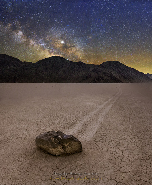 When I visited the Racetrack for the first time in 2013, nightscapes at Death Valley weren’t common, as odd as that may sound today, and capturing the famous “moving rocks” at night was still a novel bucket list item (!!). Fast-forward to today, the novelty of the concept is long gone, however it was still fun (and at times frustrating) trying to find a rock with a nice track behind, all in absolute darkness. When we found this one, we settled!