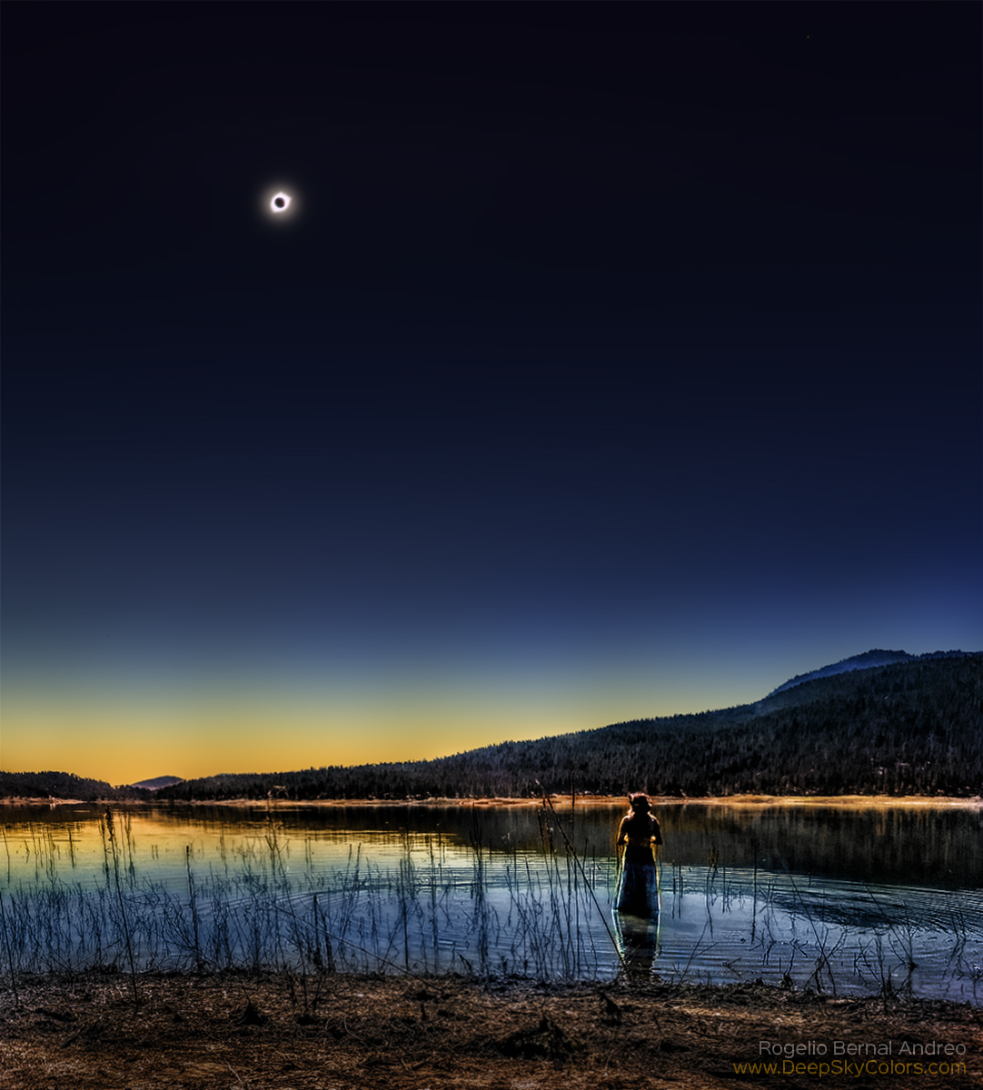 Award-winning image of a woman mesmerized by a total solar eclipse