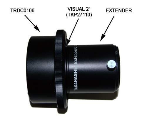 Now you insert the Visual 2″ inside the TRDC0106. By the way, you could – in fact I recommend it -put the TRDC0106 on your scope already, and build the optical train as you go.