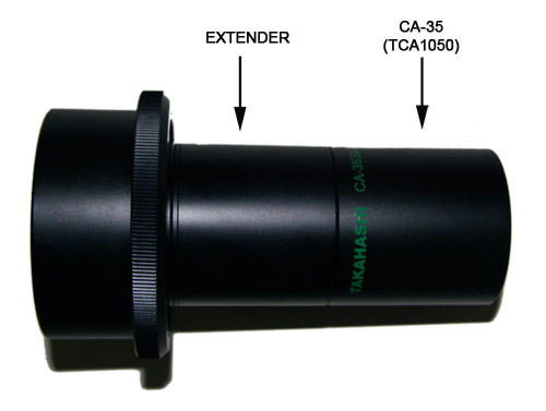 Now it’s time to put the CA35 inside the extender. Make sure the CA35 thumbscrew is tight. Not only you’re going to hang a very expensive 4lb CCD later, you want to mak esure the optical train stays as straight as possible to avoid flexure and other evil things.