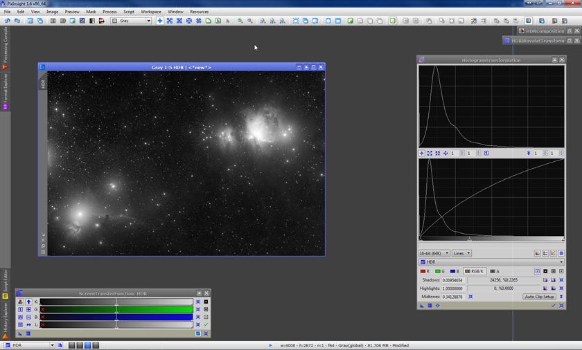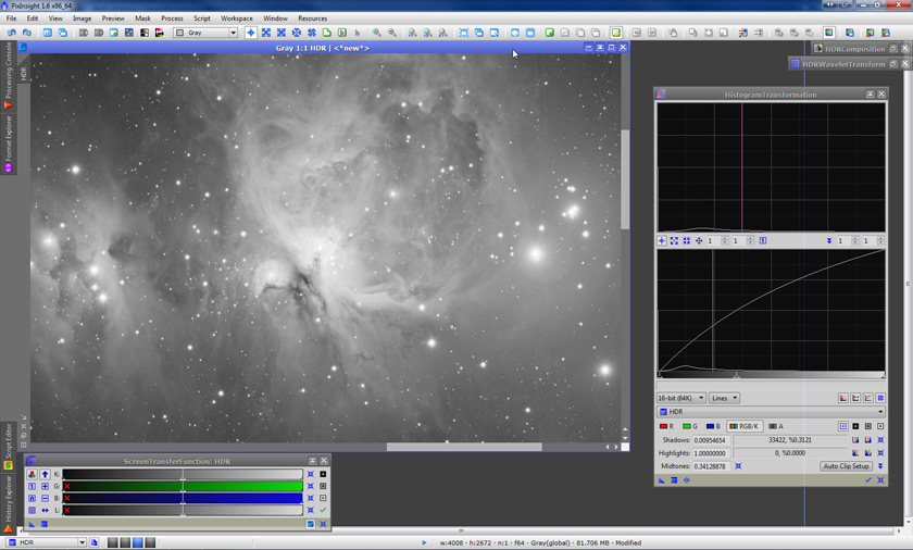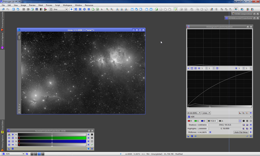 Once we’re reached this stage, we can try to improve the results even more, depending on our particular goals. We’re going to do this by doing a new histogram stretch, then applying the HDRWT tool once again. Here’s our image after the histogram stretch: