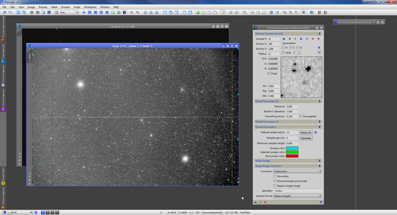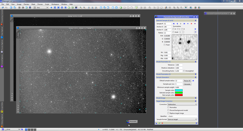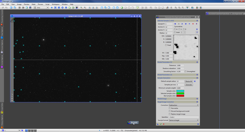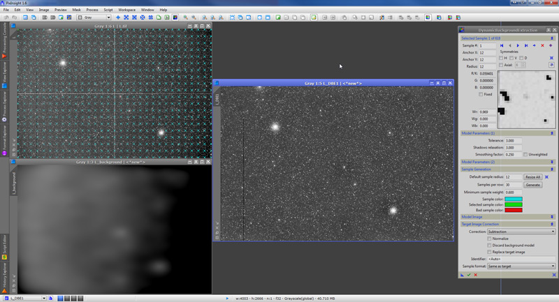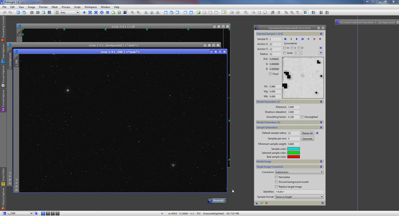 Now we use the DynamicBackgroundExtraction tool (DBE from now own) to construct the background model.