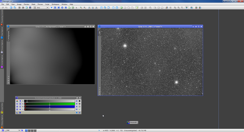 We can now close the DBE dialog and the stretched image. After doing that, we double-click on the process icon, and we “magically” apply to our “good” image the parameters we just defined earlier:
